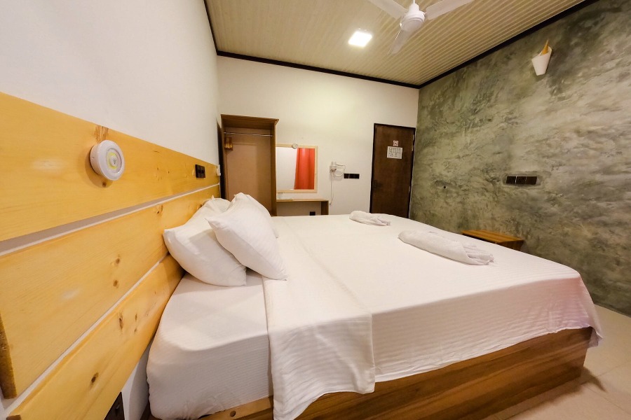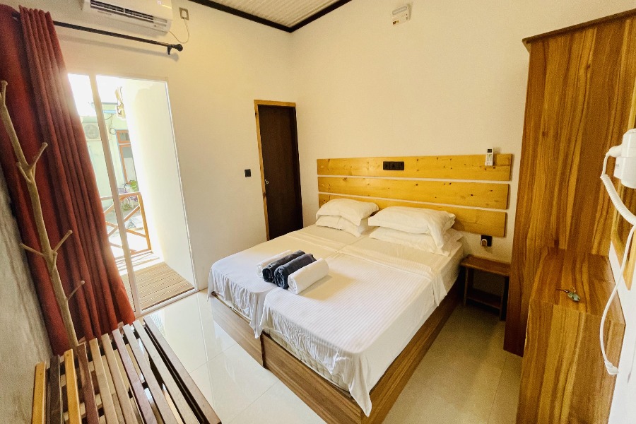 Na ostrově Fulidhoo nabízíme ubytování v malém a příjemném guesthousu vzdáleném asi 4 minuty chůze od bikini pláže. Guesthouse má pouze 5 pokojů – 4 dvoulůžkové a 1 rodinný. Všechny pokoje mají bezplatné